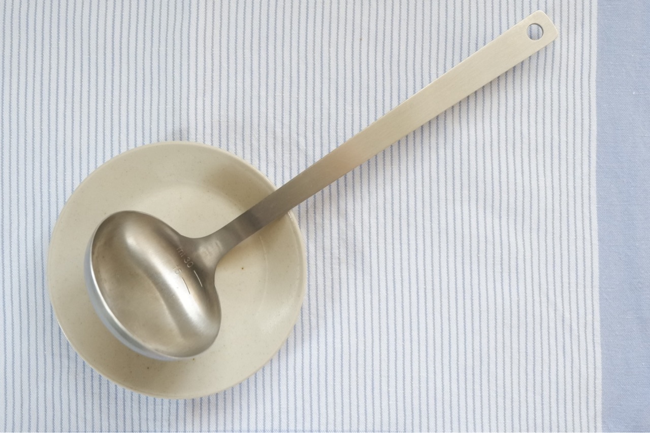 カインズのお椀に無印良品のお玉(小)を入れる図!!