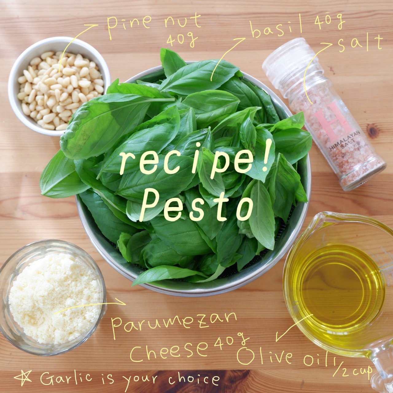 *松の実の代わりにくるみやアーモンドを入れてもいいですが松の実が私好み
