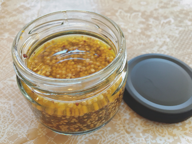 粒マスタードは、もう水分を吸って汁気がなくなりました。