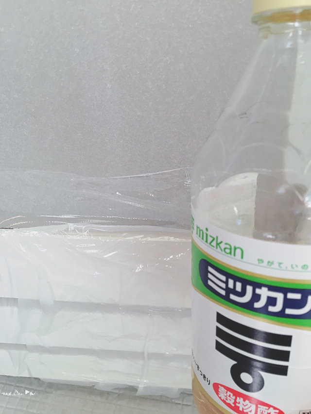 *クエン酸を薄めてシップが一般的ですが、築10年以上なので液体のお酢を原液で使用しました。劣化してしまうかもしれませんのでまずは薄めて自己責任でお願いします。