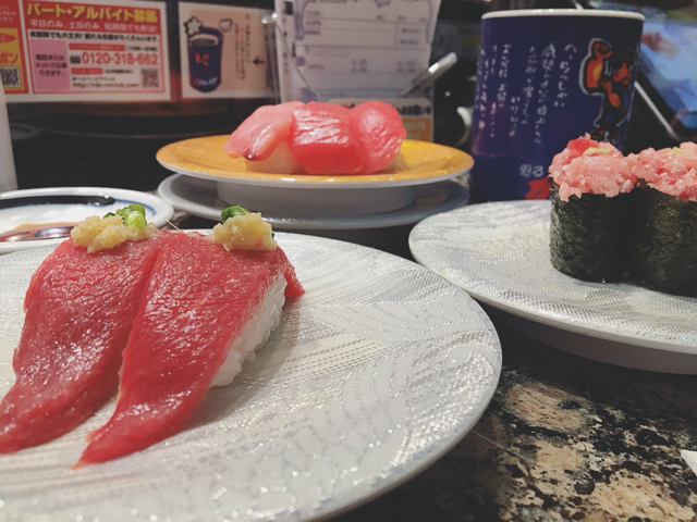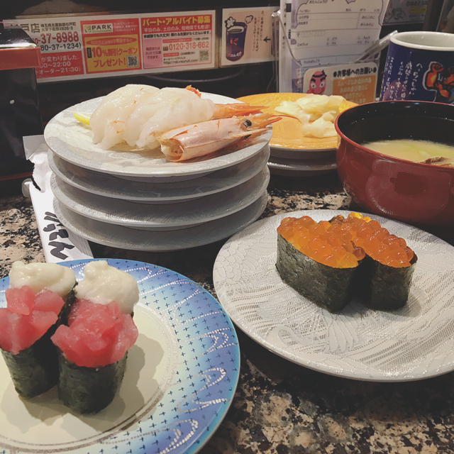 夫と夜に、廻るお寿司屋さんへ♪