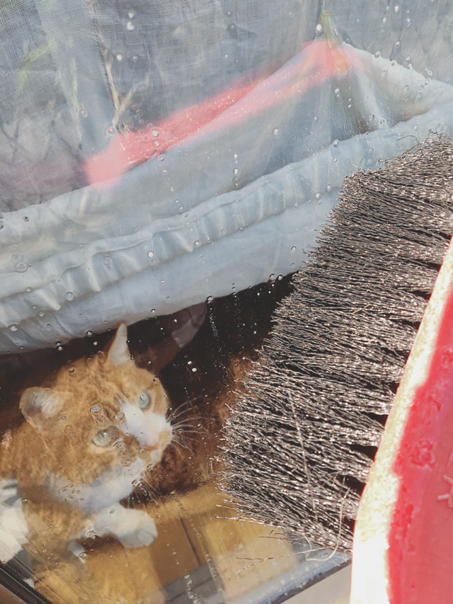 気を取り直して、脚立に乗ってさっさと丸洗いをしなくては。