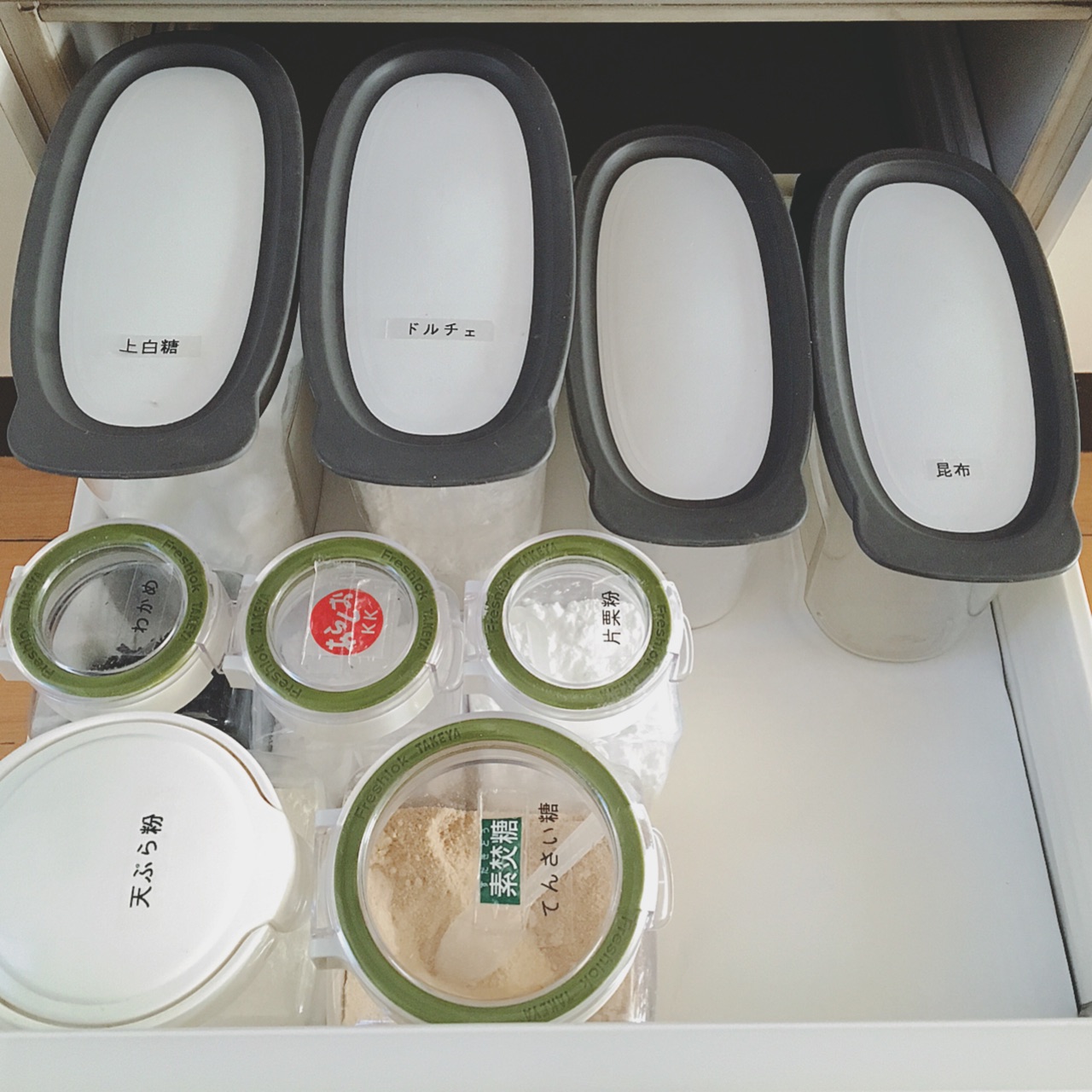 食洗器下の引き出しには粉類を入れています。
