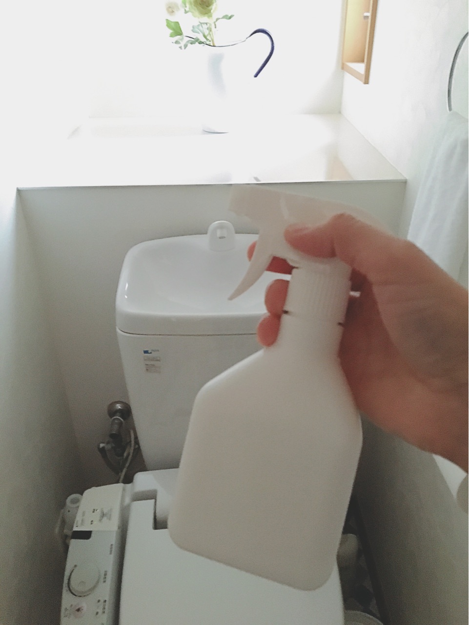 100均の白いスプレーボトルに、愛用している超電水クリーンシュシュを入れて、トイレ洗剤にすることにしました。