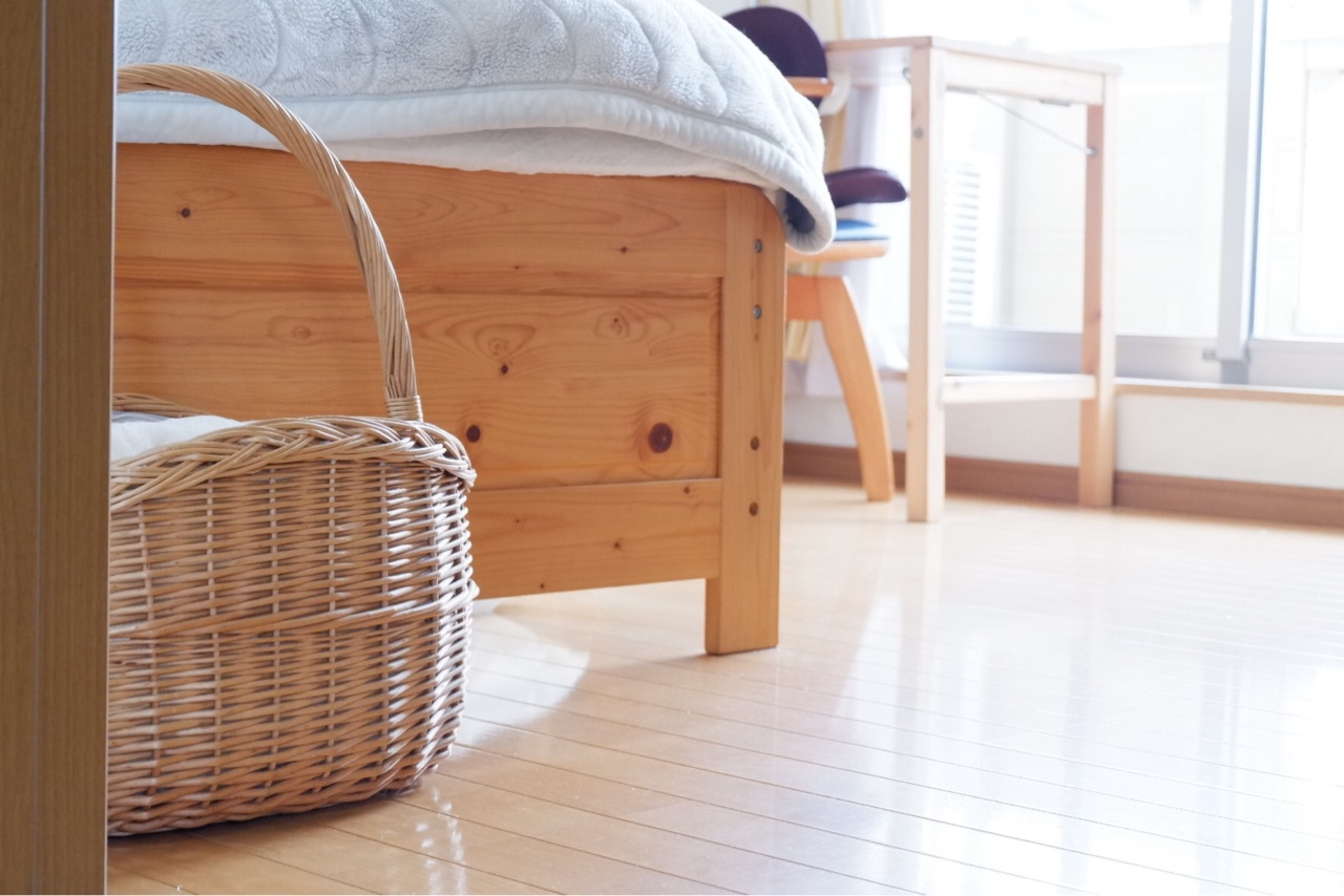 カゴは、隙間にホコリが入るし、通気が悪いと虫が湧くこともあるらしい。年に1~2回、気になったらシャワーでザーッと水を掛けるだけ。