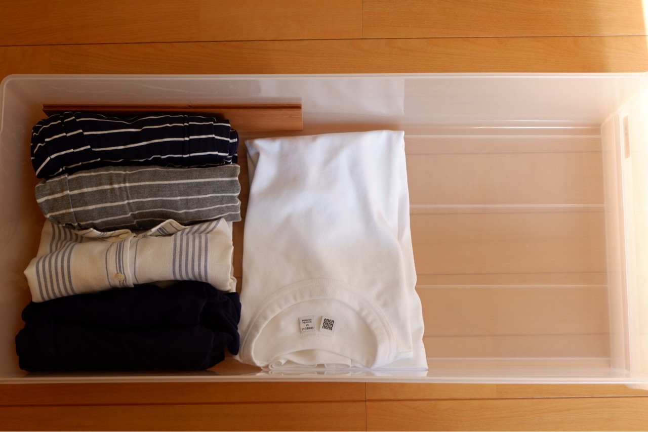 洋服は、1引き出しに1シーズンにしています。春秋服・夏服・冬服・ボトムス。