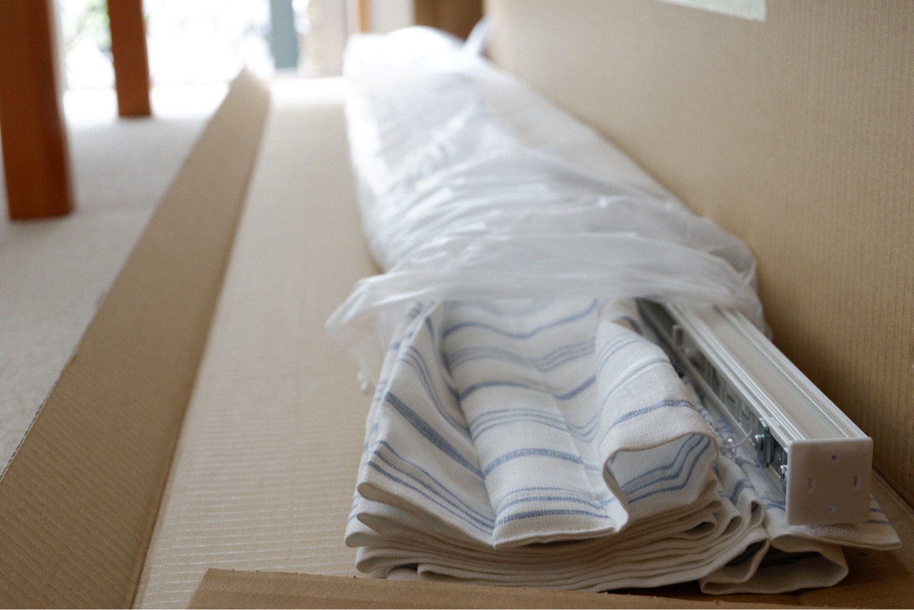 カーテンは黄色が好きだったけれど、ブルー&ホワイトにしてよかった。
