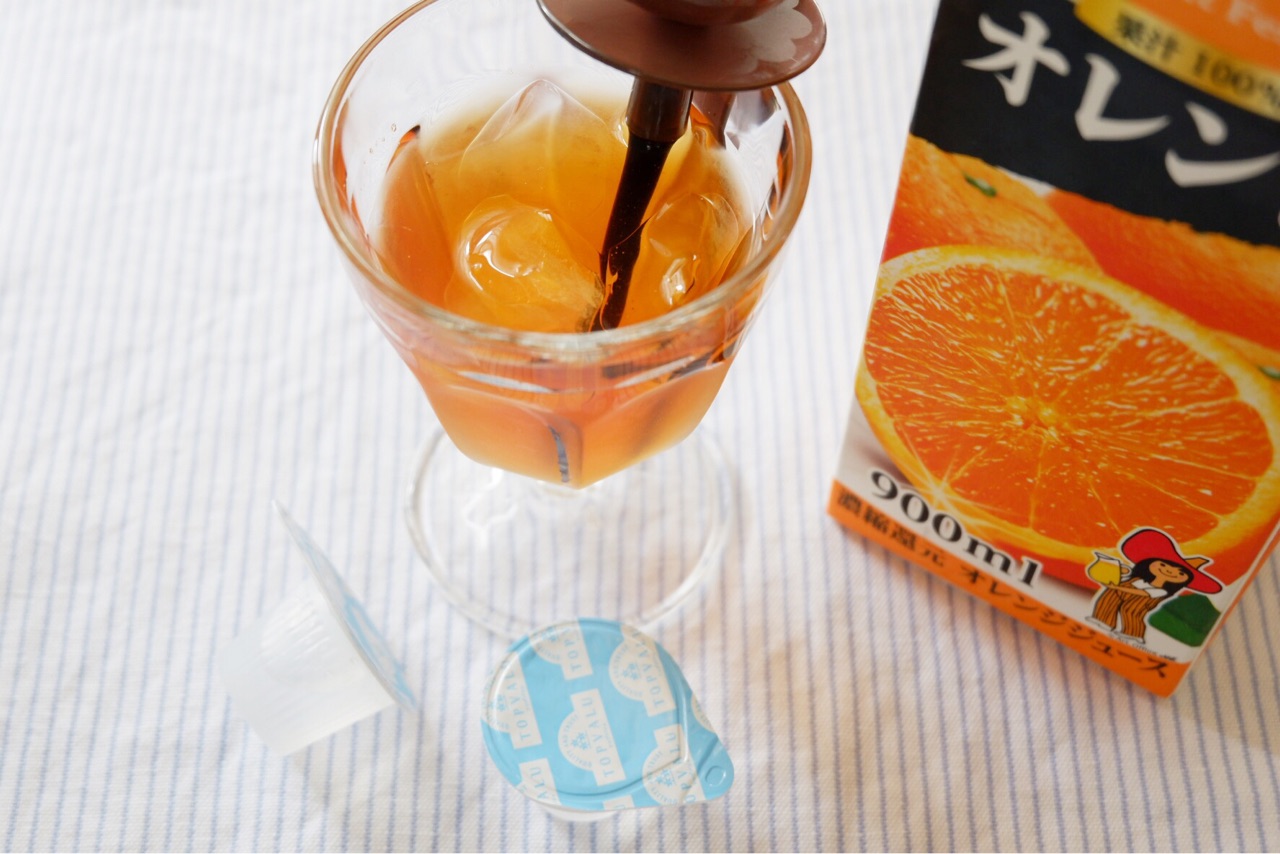 オレンジジュース+ガムシロを混ぜたものを注ぐと・・・
