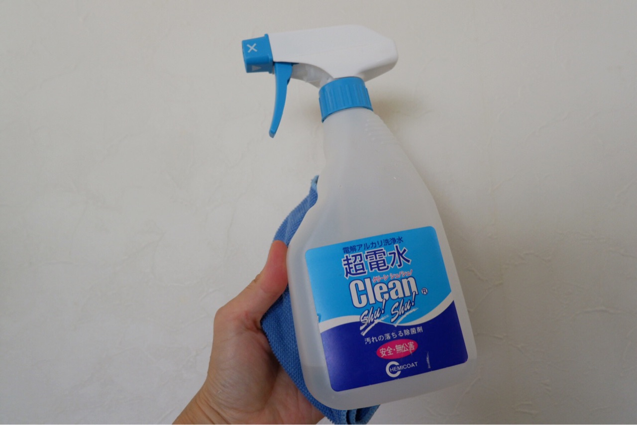 壁と床、冷蔵庫も食器棚も愛用のクリーンシュシュで拭きます。