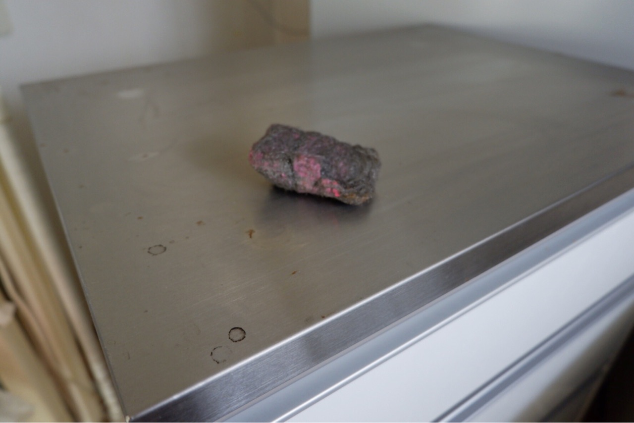 電気オーブンを置いていた食器棚の上は、ちょっとサビができていました。