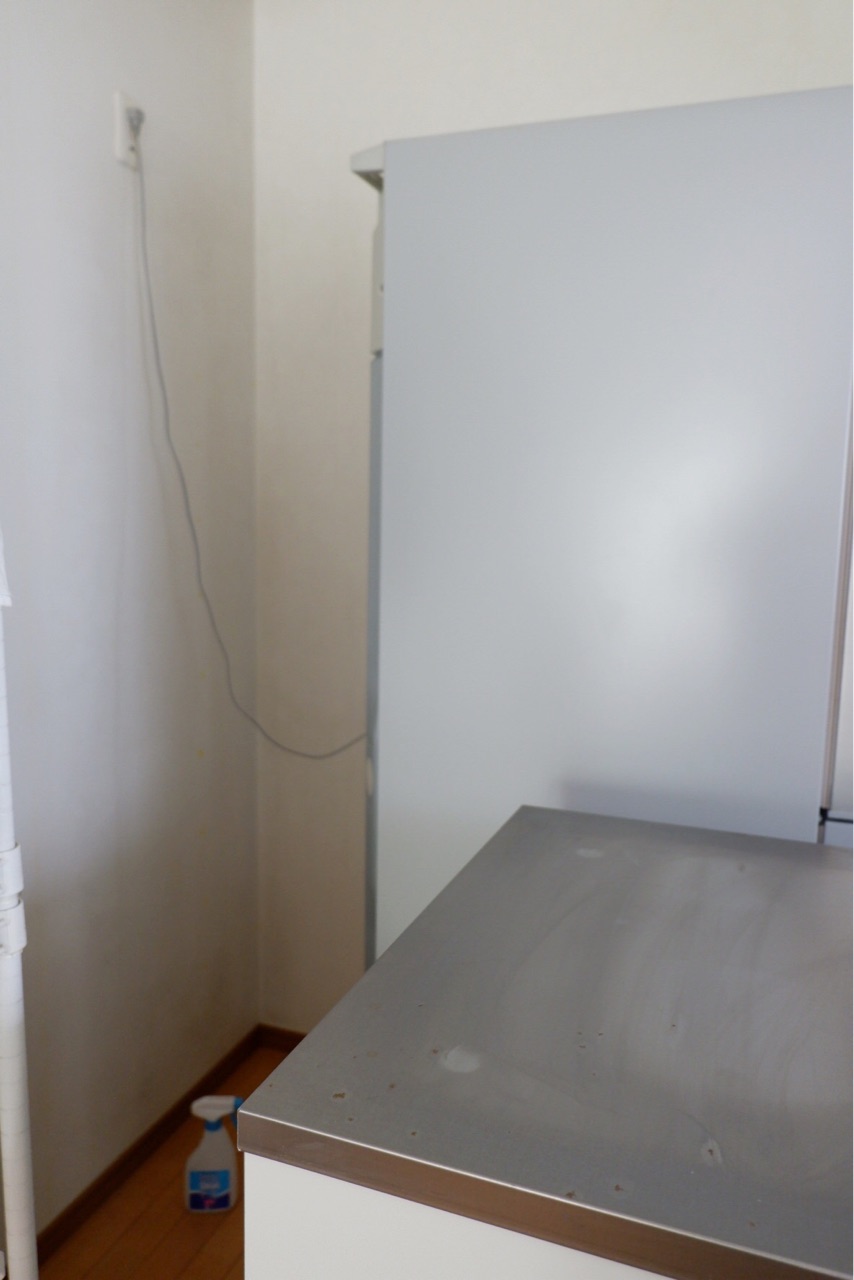 せっかくなので、オーブンの隣の食器棚と冷蔵庫を移動して掃除することにしました♪