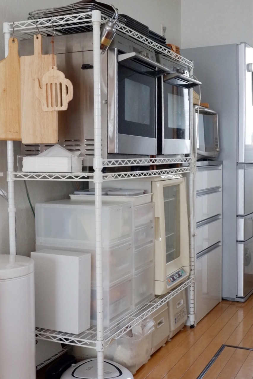ガスオーブン2台置いているメタルラック(スチールラック)を掃除しました♪