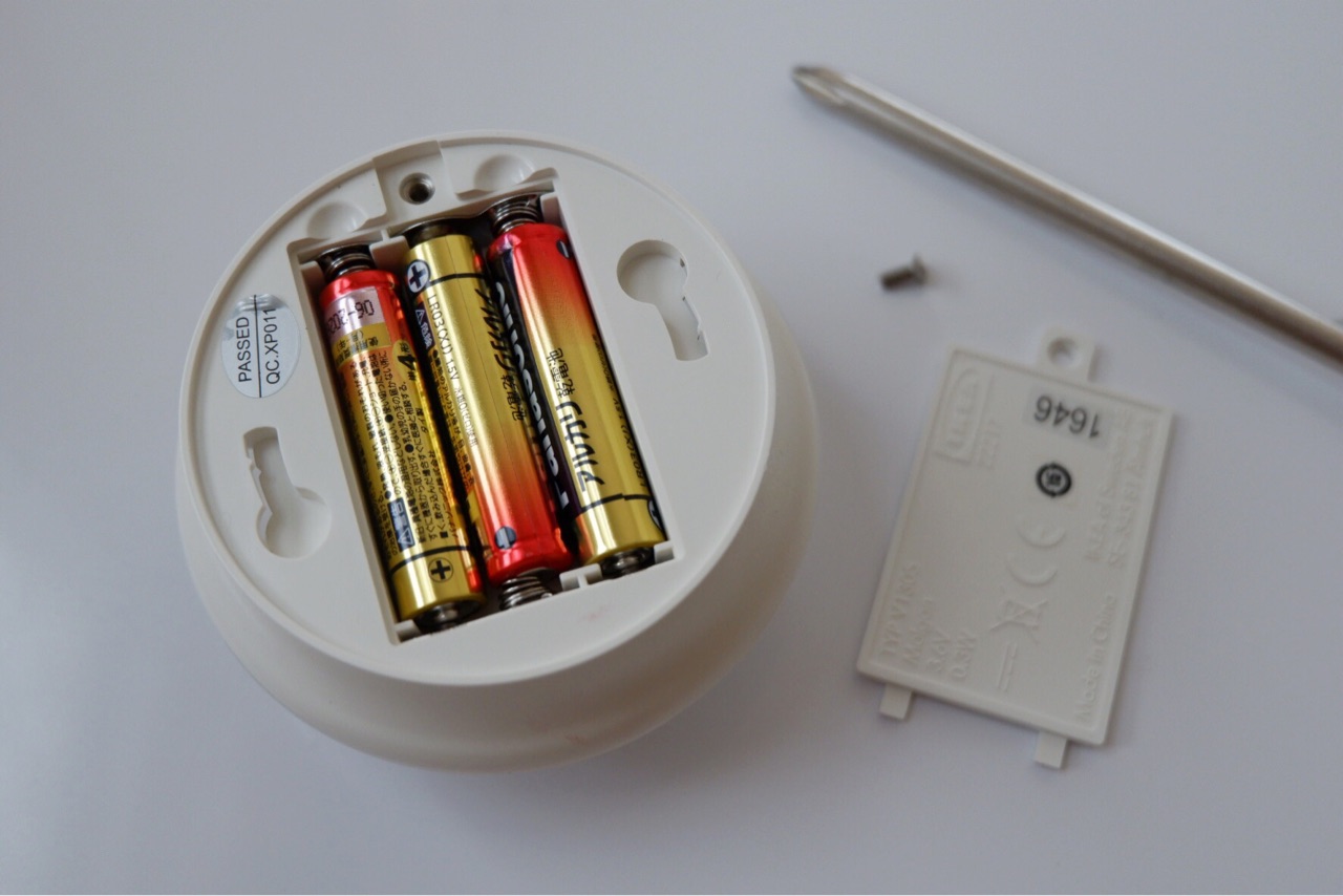 IKEAのセンサーライトは、ごく普通の電池で簡単に交換できました。