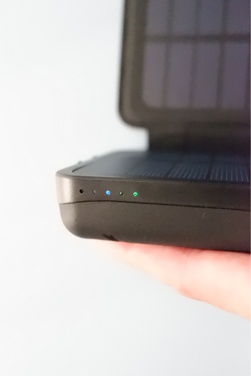 曇りでもライトが点滅していたので、蓄電しているようでしたが、本体の電量残量表示ライトが増えませんでした。