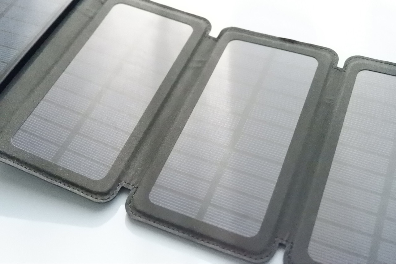 ワイヤレス充電機能搭載折り畳み式ソーラパネルモバイルバッテリー