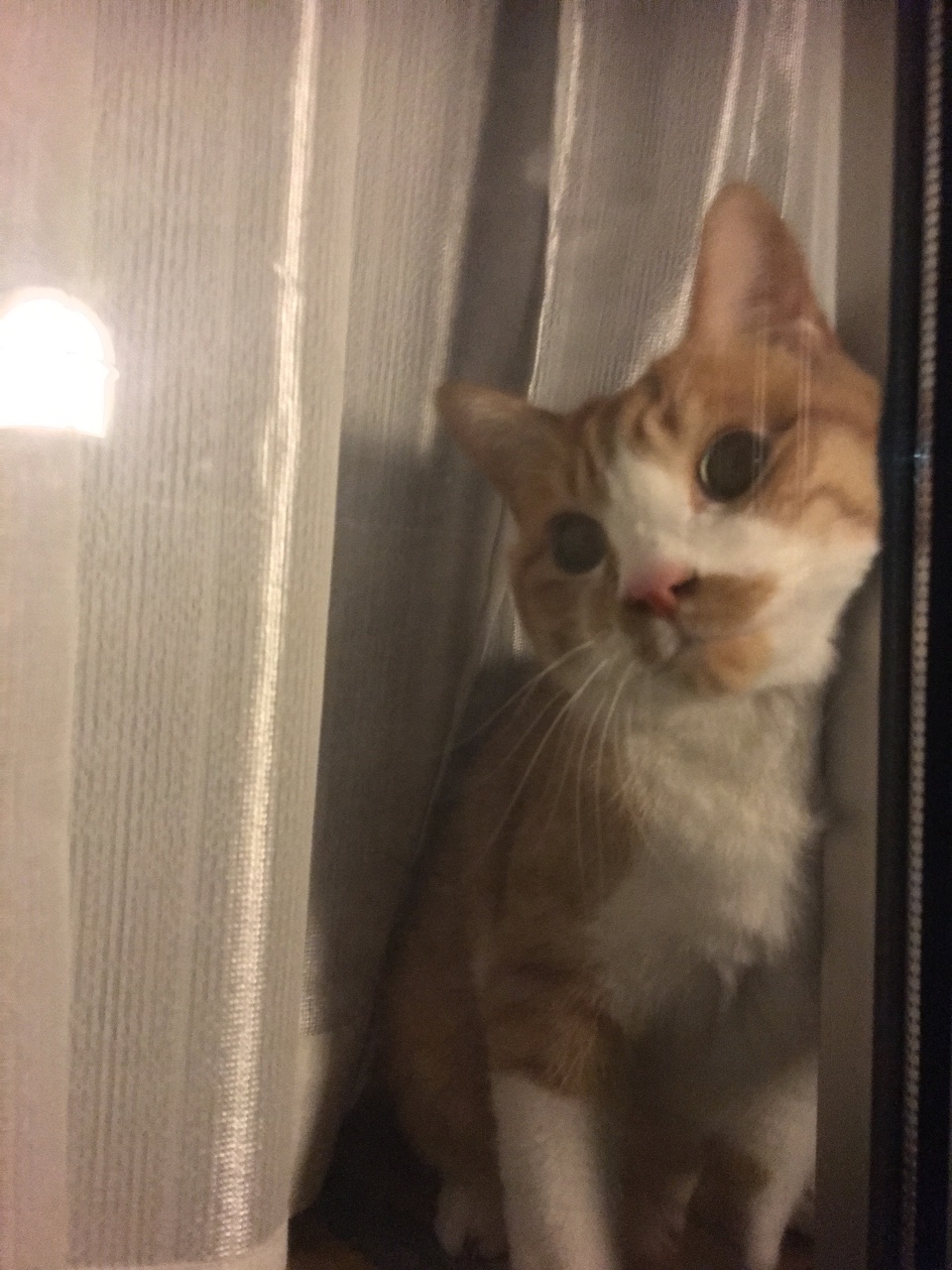 掃き出し窓でガッチャンがクネクネお迎え♪
