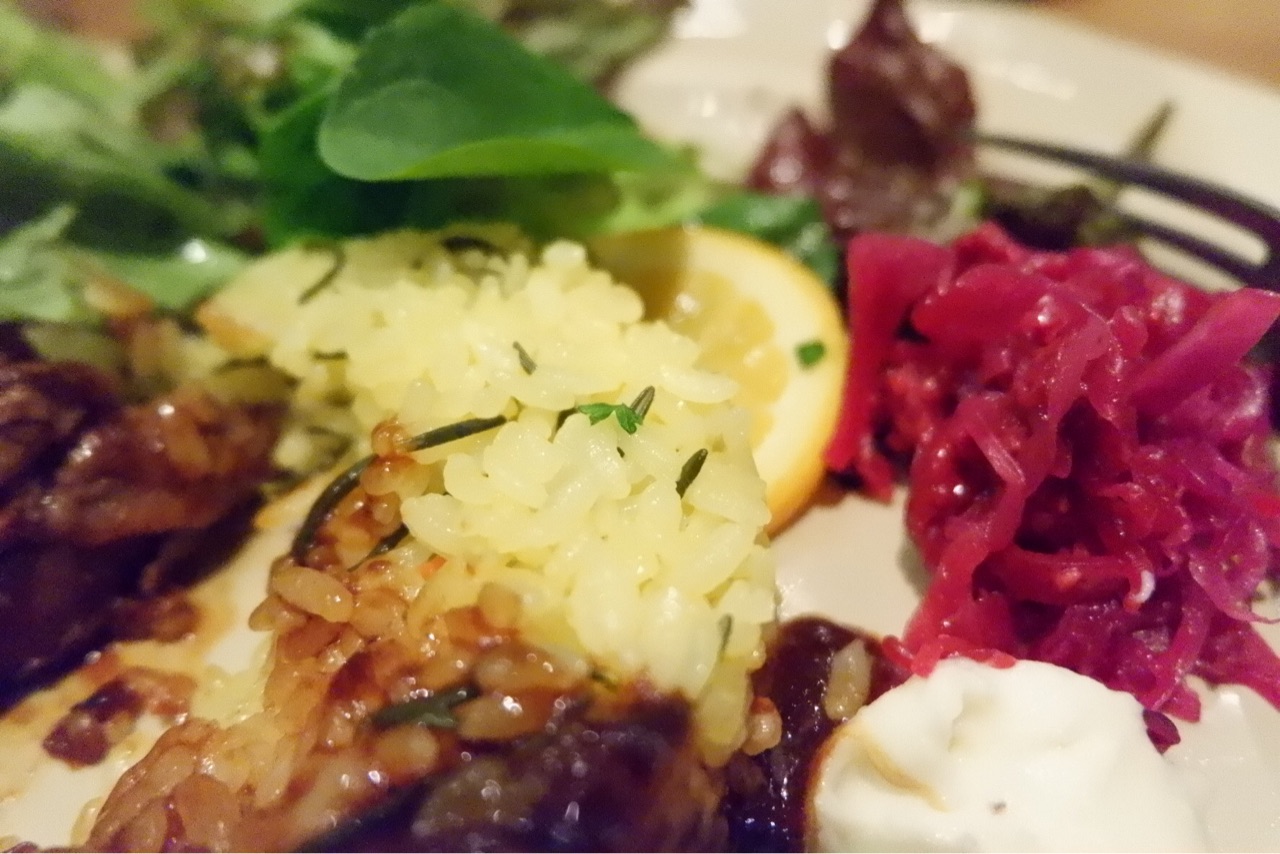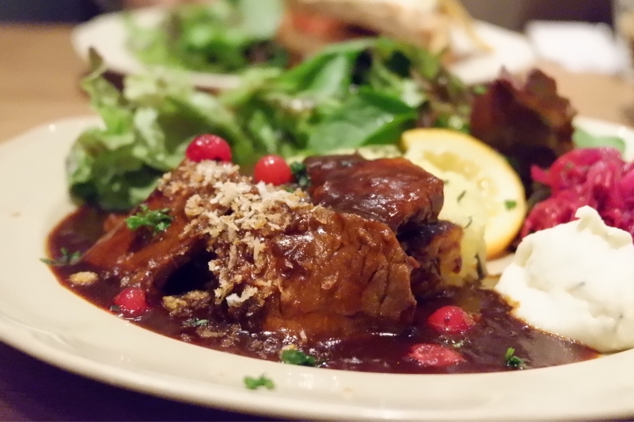 柔らかく煮込んだビーフシチューをローズマリーライスと合わせたひと皿。紫キャベツとラズベリーのコールスロー、マッシュポテト、グリーンサラダを添えて。(公式HPより抜粋)