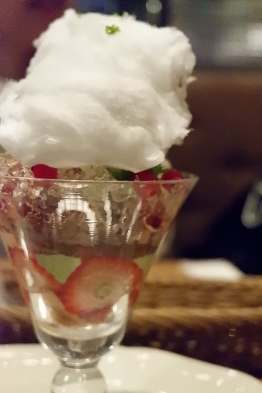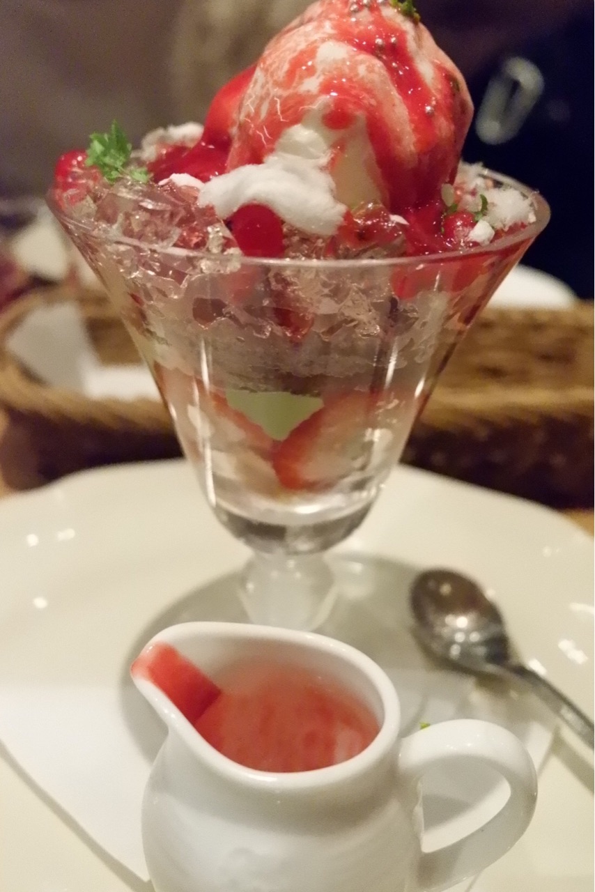 いつもながら、上のアイスと下のクリームの温度差とフルーツと他のコミカルな食感に違いが絶妙でした。