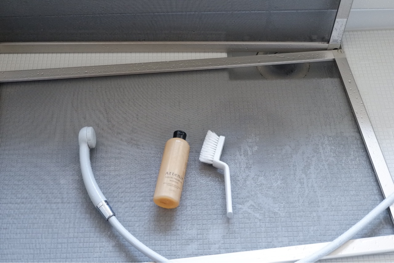 ブラシとシャンプーとシャワーで一気にきれいに。