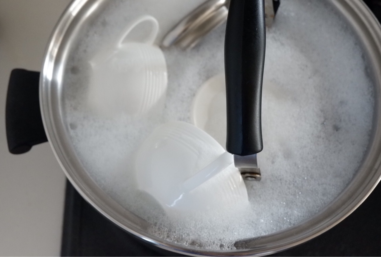 オキシクリーン液が冷めていたら効果が半減するので再加熱しましょう。