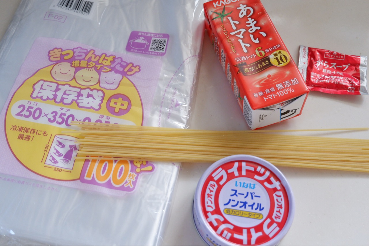 それに、自宅で用意したパスタとツナ。