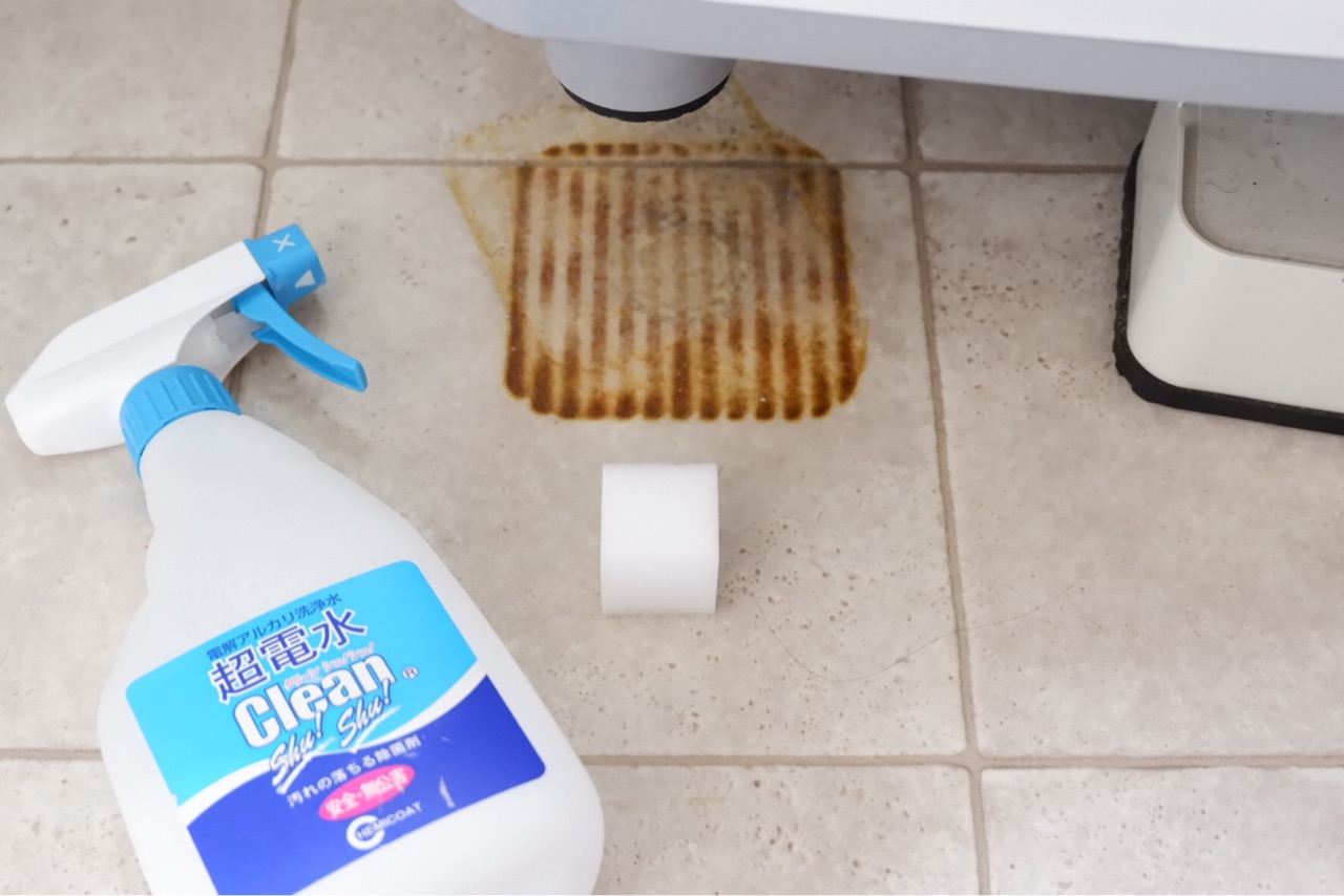 クッションフロアとかさ上げ台の黒いゴムが化学変化を起こして、