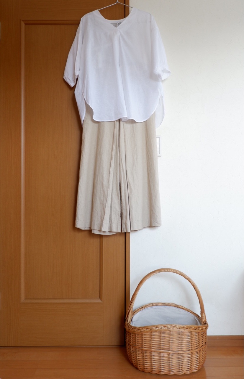 夏は麻混で*ブラウス&リネンワイドパンツ