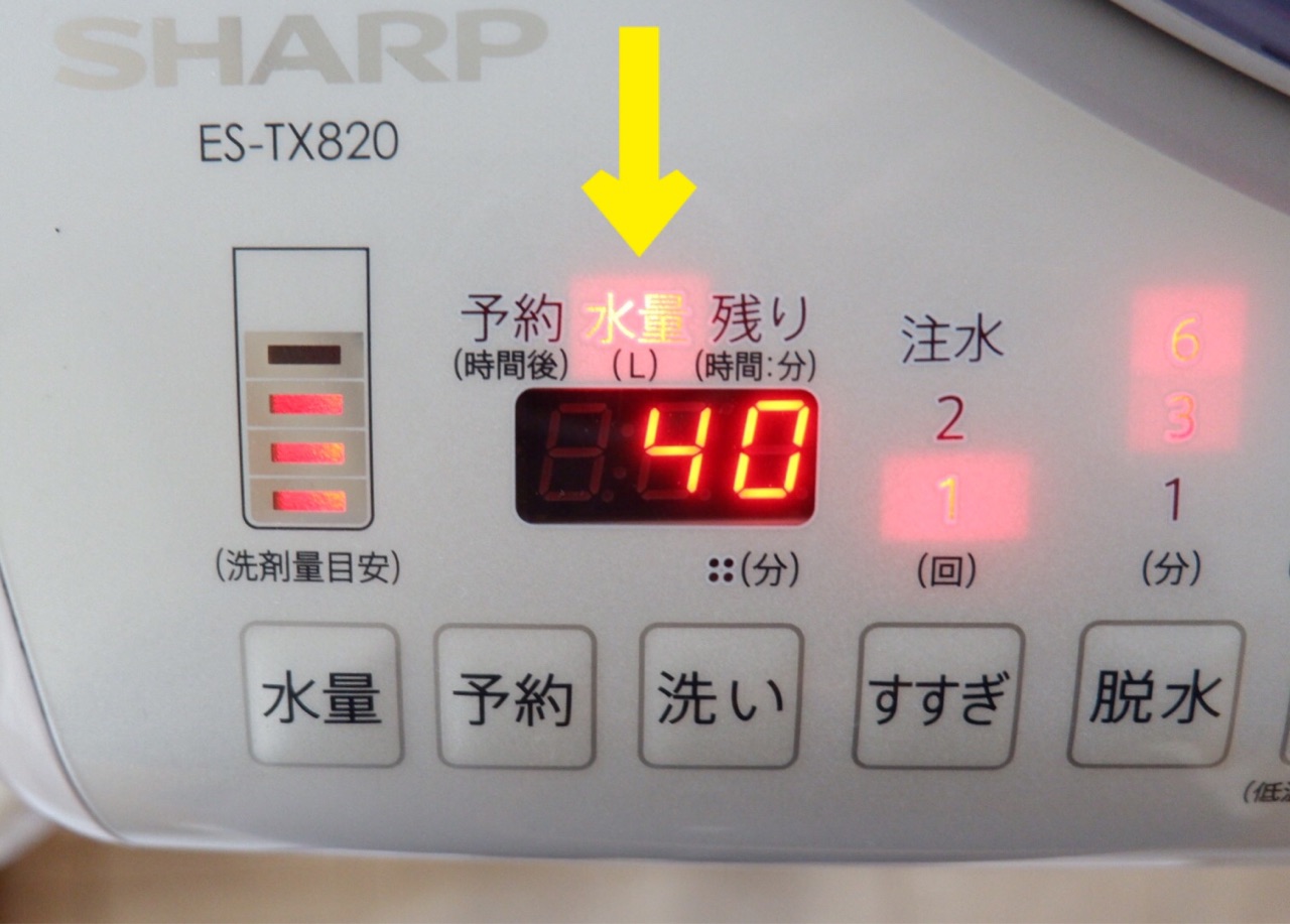 次は、洗濯機の【水量】を確認!