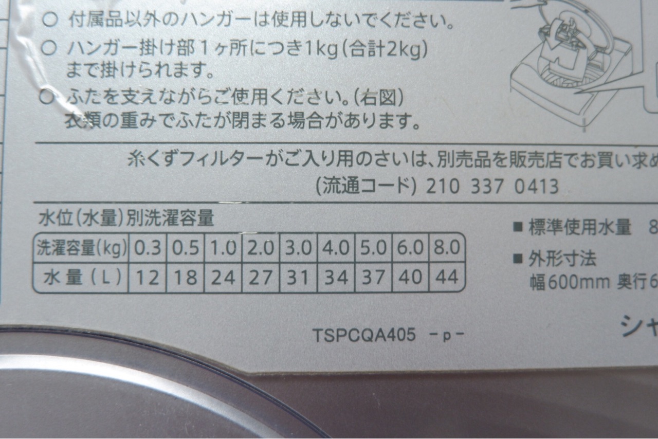 洗濯機上部のラベルで確認!