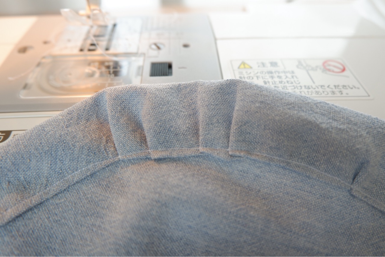 三つ折りした部分に、平ゴムを通して出来上がり♪