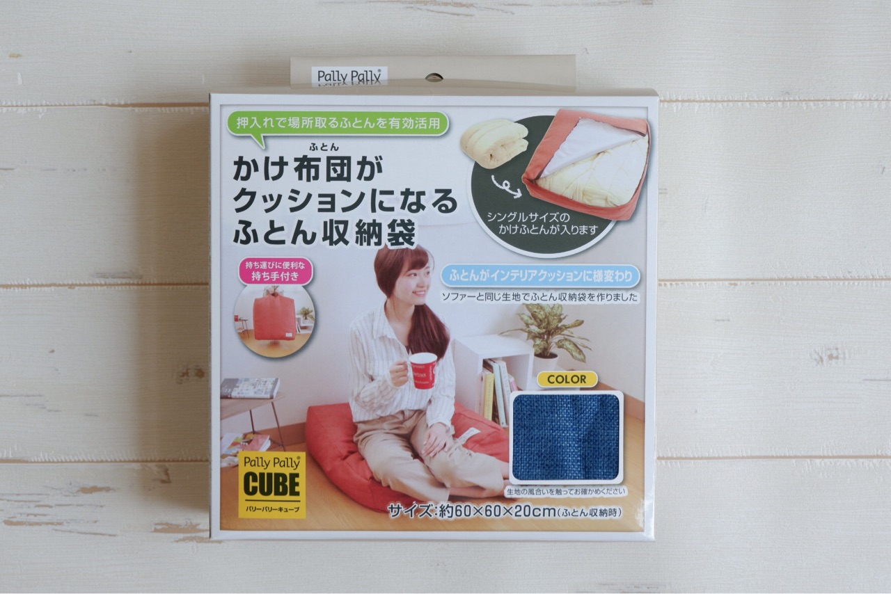シングルサイズのかけ布団がクッションになる収納袋を発見!