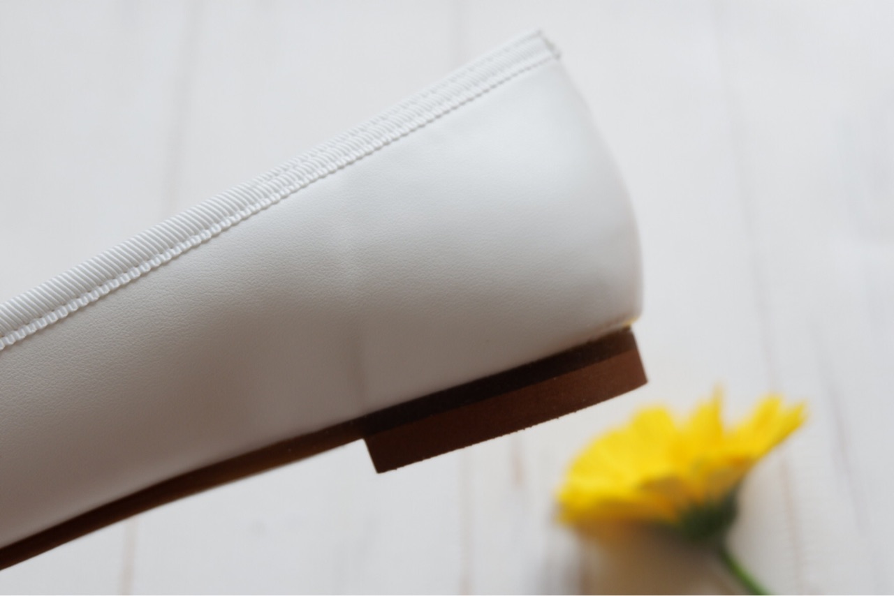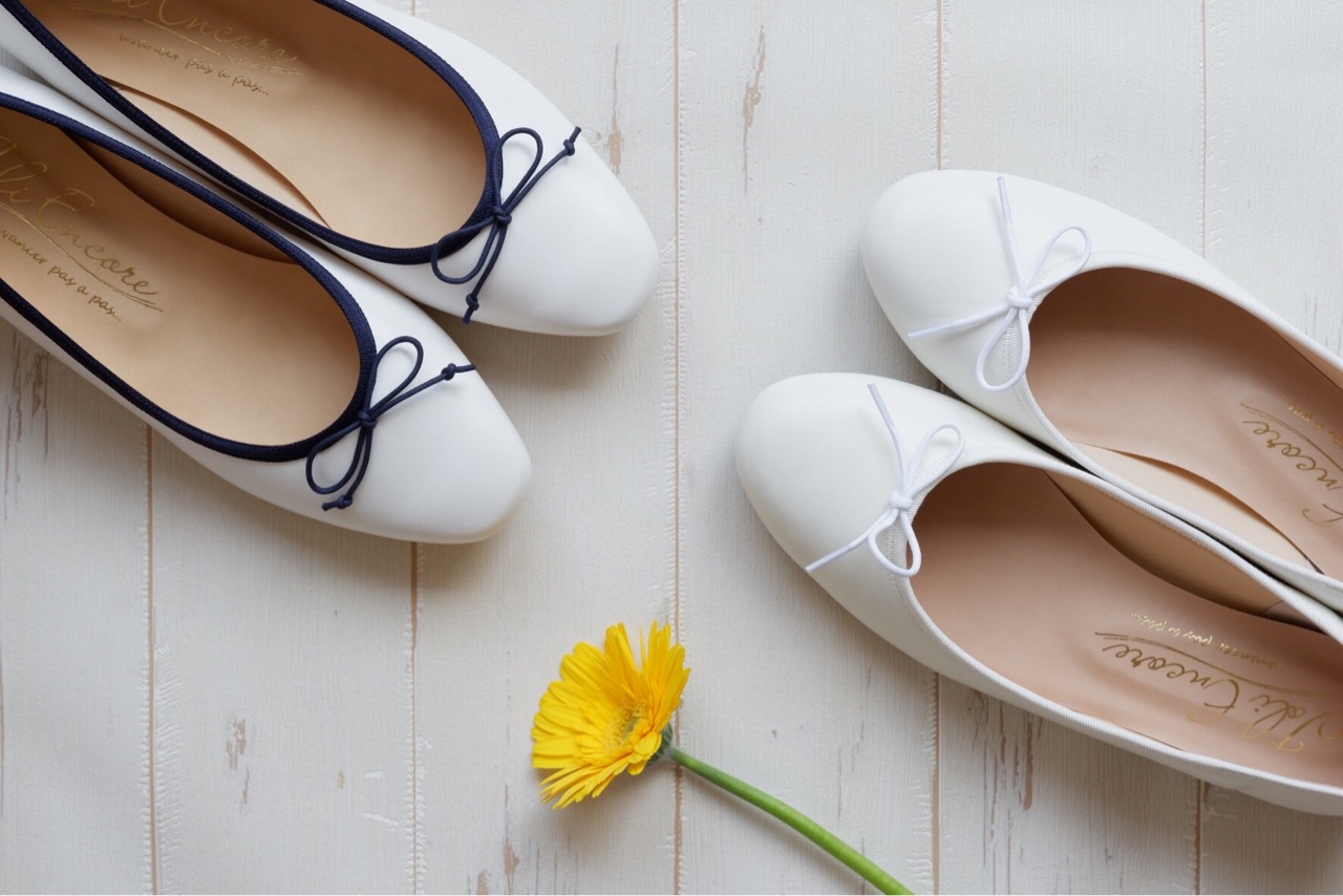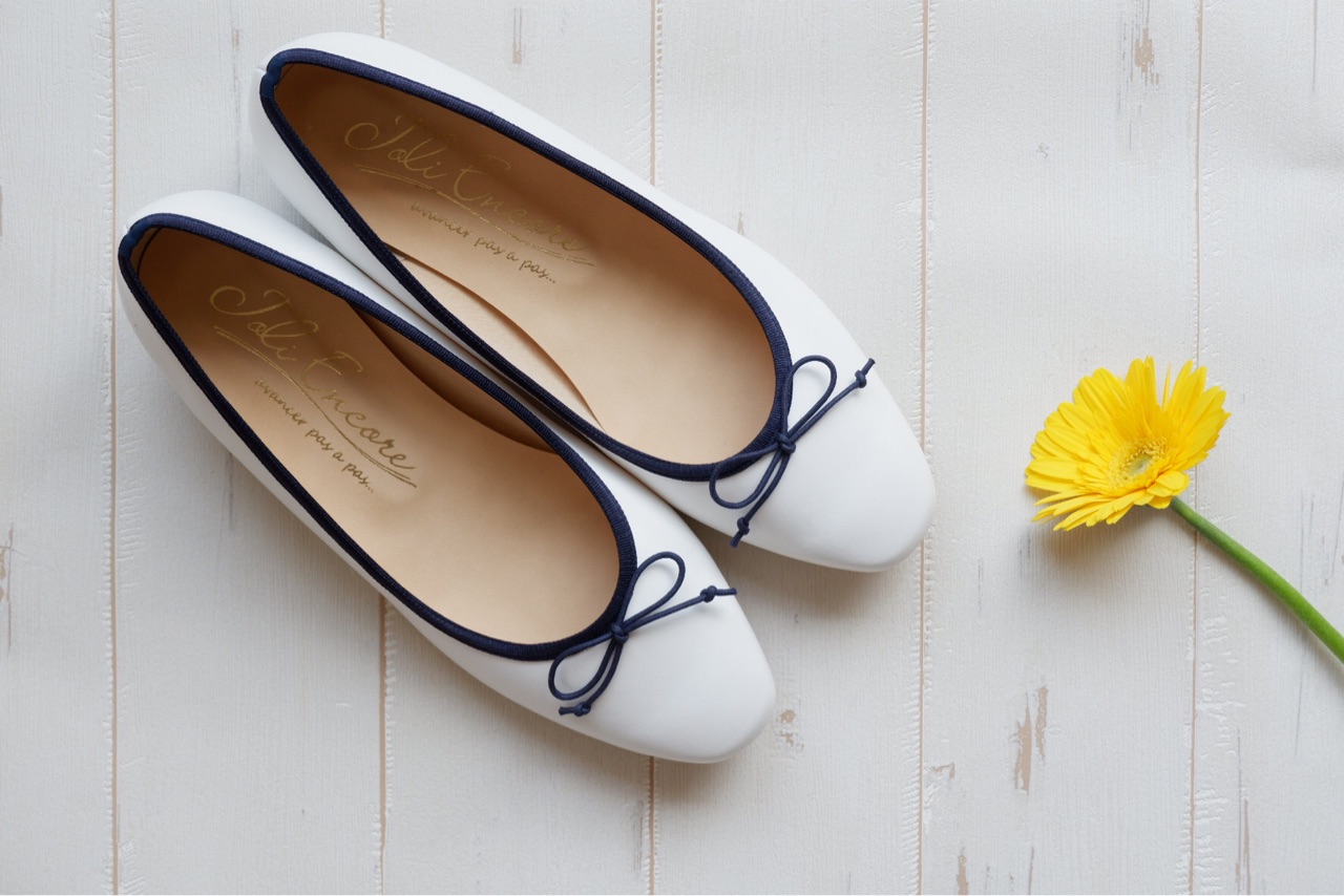 ホワイトにネイビーがアクセントのバレエシューズ♪