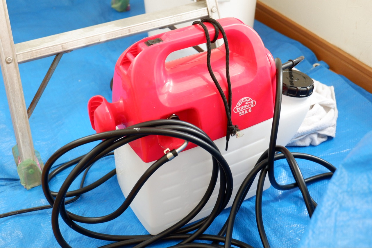 ビニールカバーをして洗剤を噴射掃除。