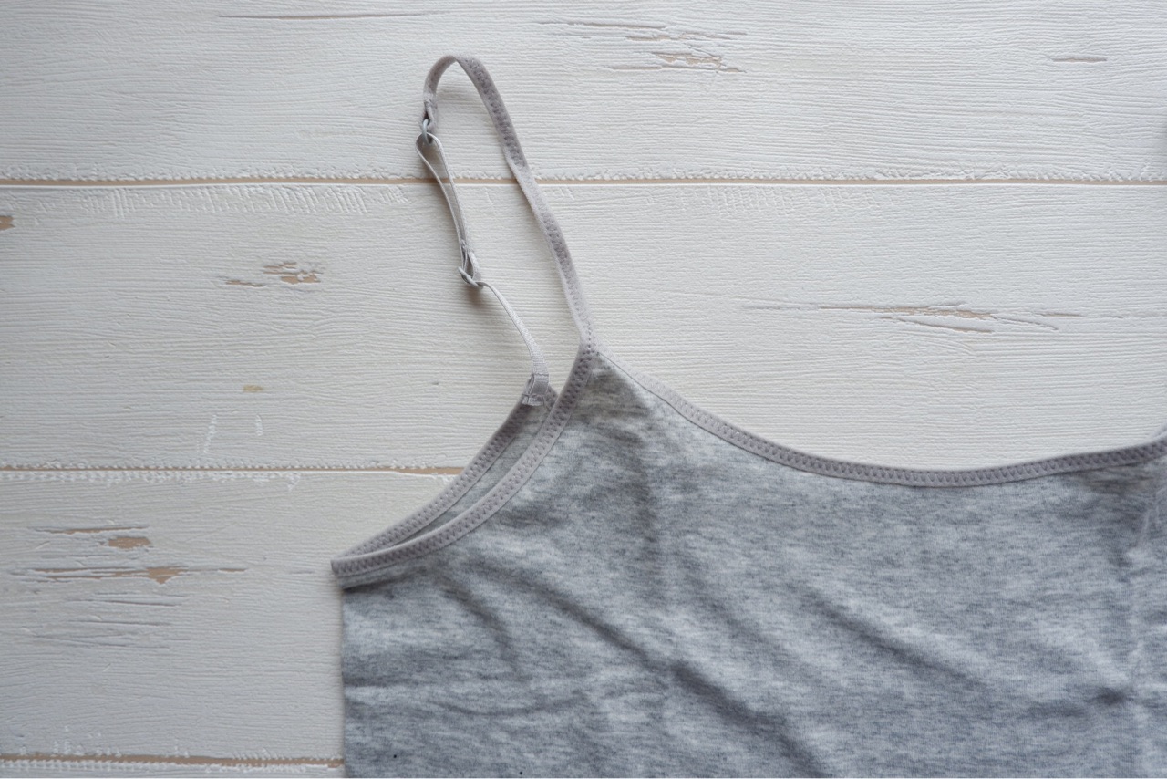 今まで着ていた無印良品のキャミソールは、1年以上着てヒモが伸びてしまうこともありませんでした。丈夫!