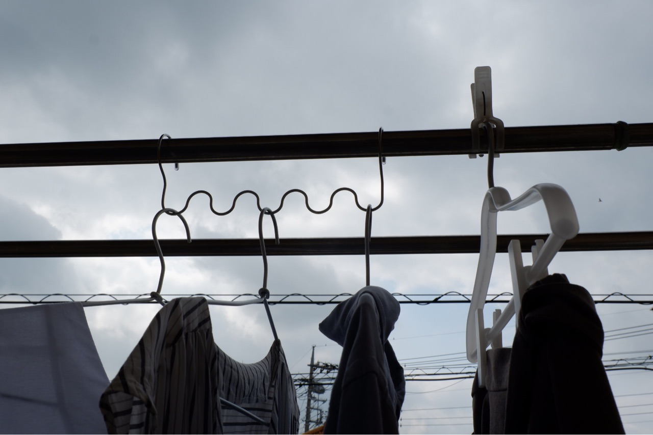 いつも家の中で洗濯物をハンガーにセットしてから外干ししています。