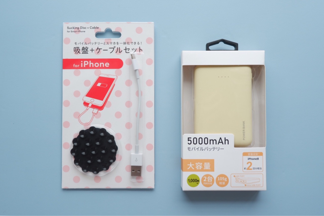 お出かけのスマホ充電に重宝する、3COINSグッズでした。私のスマホケースは、プラスチック素材ではなかったので吸盤がつかなくて、娘用になりました(涙)