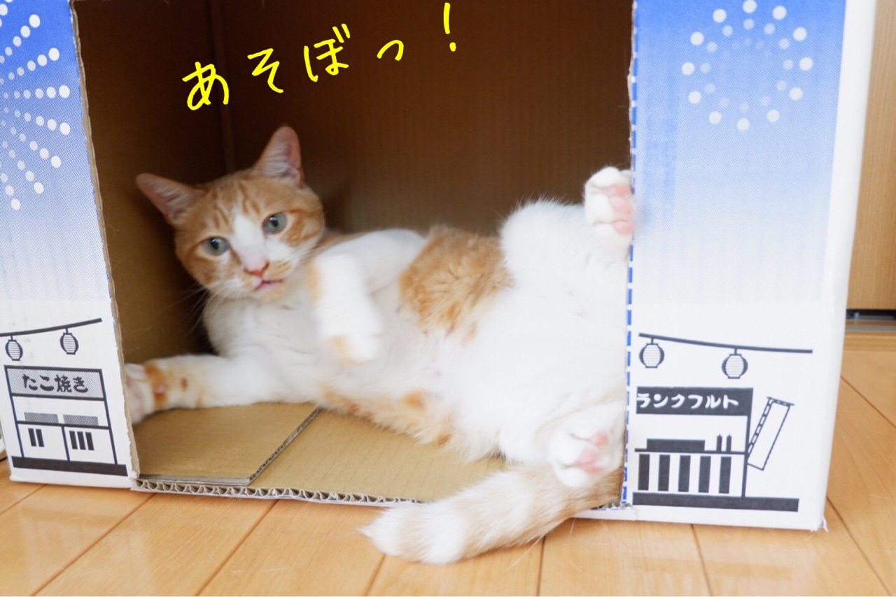 カインズのペット用トイレシーツの空き箱がお気に入り♪