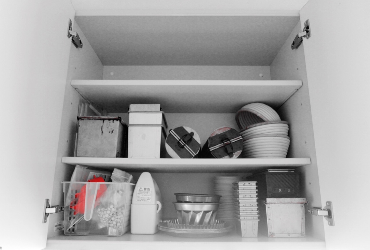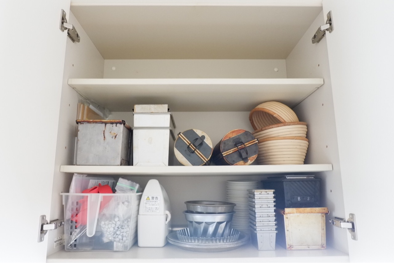 キッチン吊り戸棚をすっきり*今必要なものだけに。