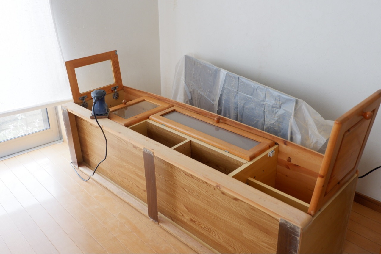 【DIY】古いテレビ台を、サンダー掛けできれいに