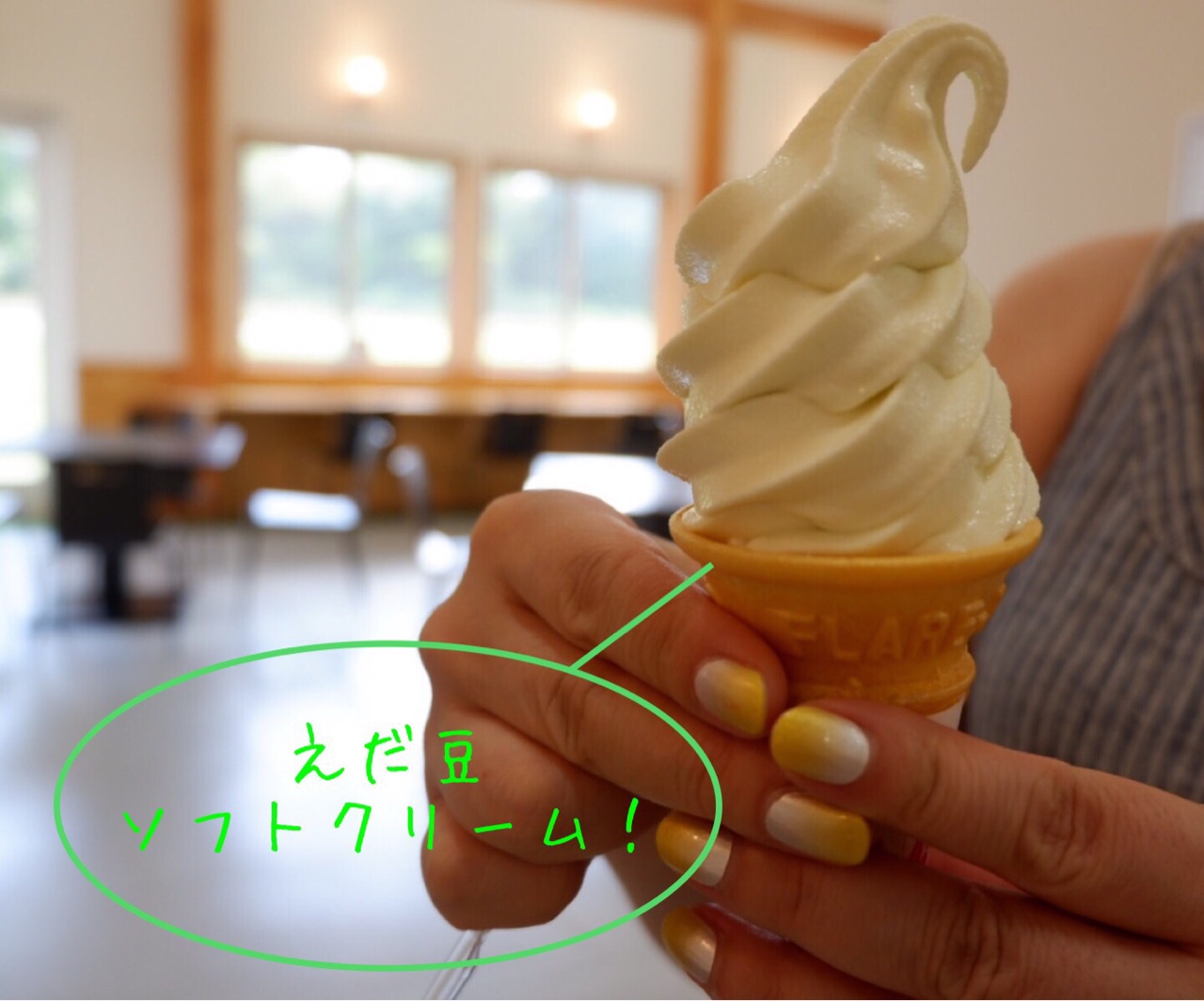 特産品の枝豆ソフトクリームを皆で分け合って食べました♡