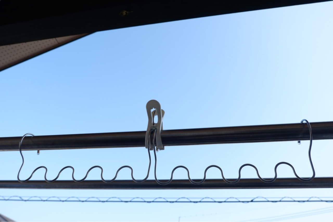 左右の洗濯ものの量によって干す位置を微調整しています。