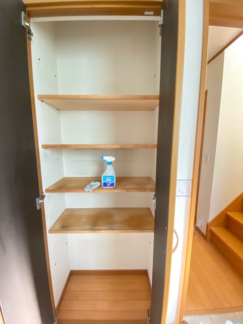 下着類のケースの擦れで棚は黒ずんでいます。。。