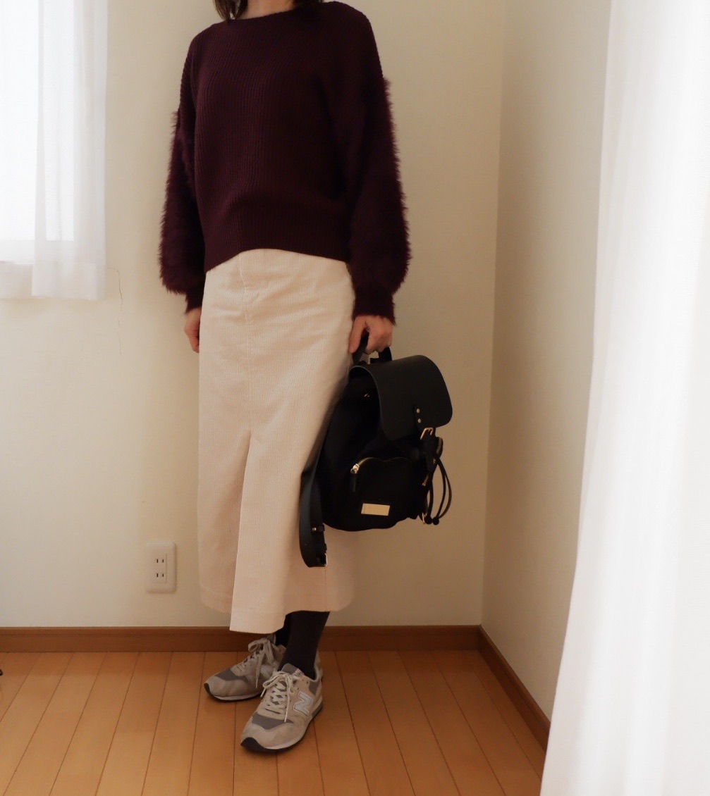 この冬はスカート派!ふわふわ袖ニット&コーデュロイタイトスカートをコーデ買い