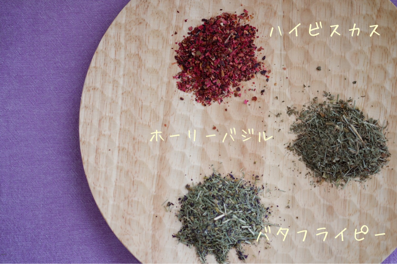 原材料は、バタフライピー・レオングラス。