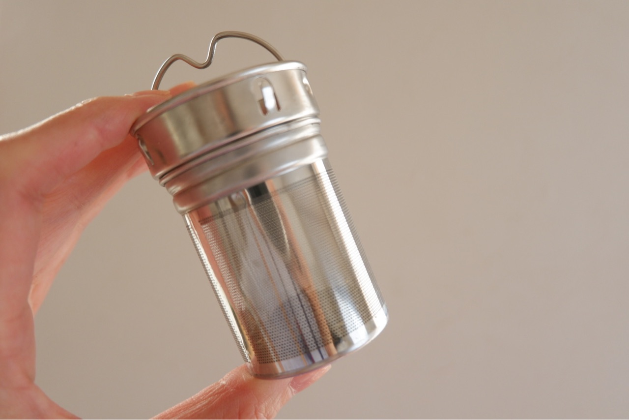 今度は茶こしに茶葉を入れました。