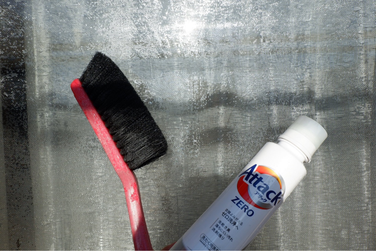 ちょっとだけ洗濯洗剤を付けてブラシでごしごし