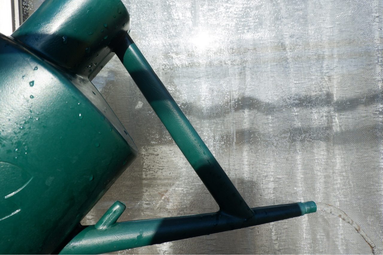 ジョーロで軽く洗い流してから