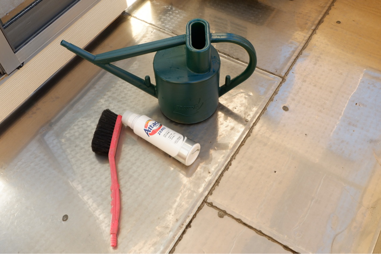 ↓ 過去にジョーロの代わりにペットボトルに水を入れて掃除していました。