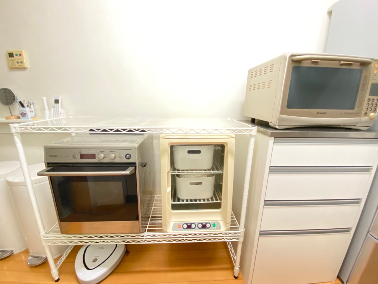*ガスオーブン、パン発酵器、電話の配線等を置いています。