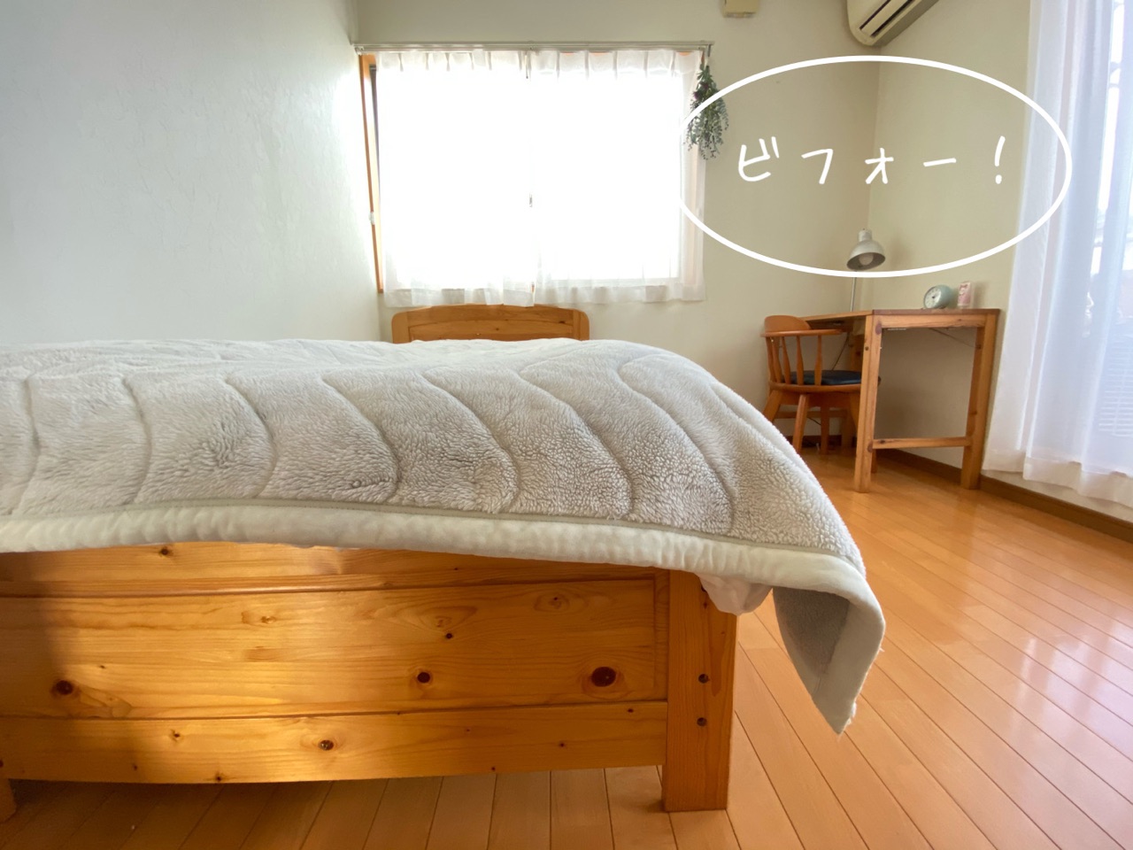 冬もベッドルームをホワイト化*ふわふわボア付き毛布にチェンジ